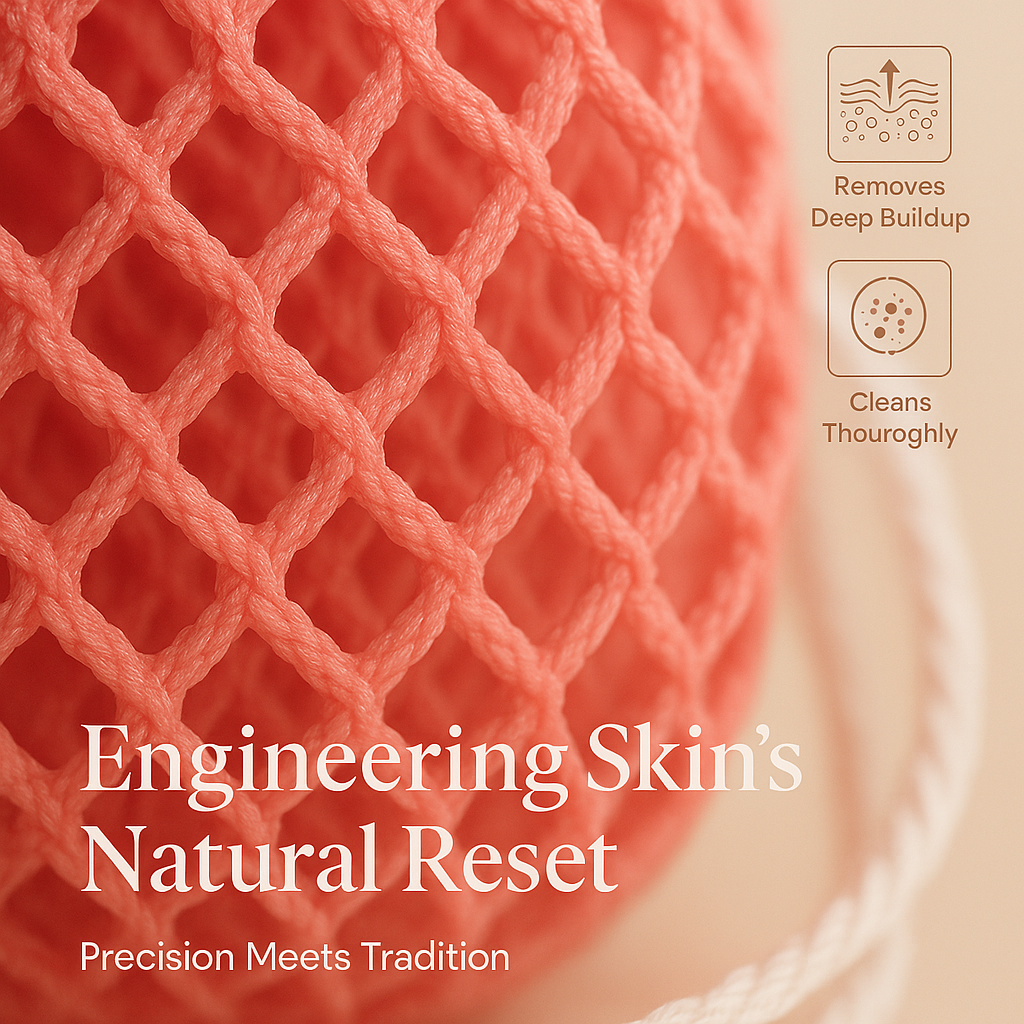 ZuriScrub™ is made from a unique knotted nylon mesh that physically lifts away dirt, oil, and dead skin instead of just pushing it around like regular loofahs do. The open weave creates gentle friction that unclogs pores, removes buildup, and leaves your skin feeling truly clean. Because it dries quickly, it doesn’t trap moisture or bacteria — keeping it fresh, hygienic, and long-lasting.